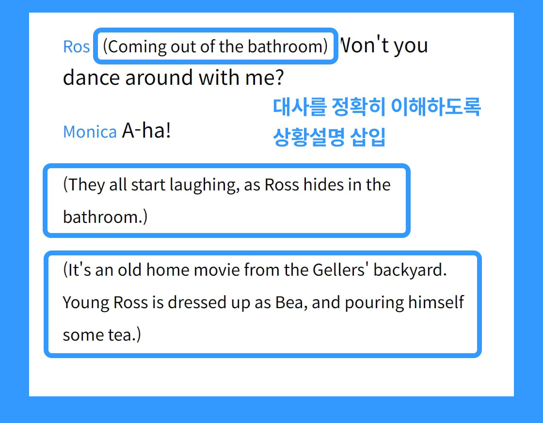 앞뒤 문맥과 상황에 따른 대사를 정확히 이해 가능
