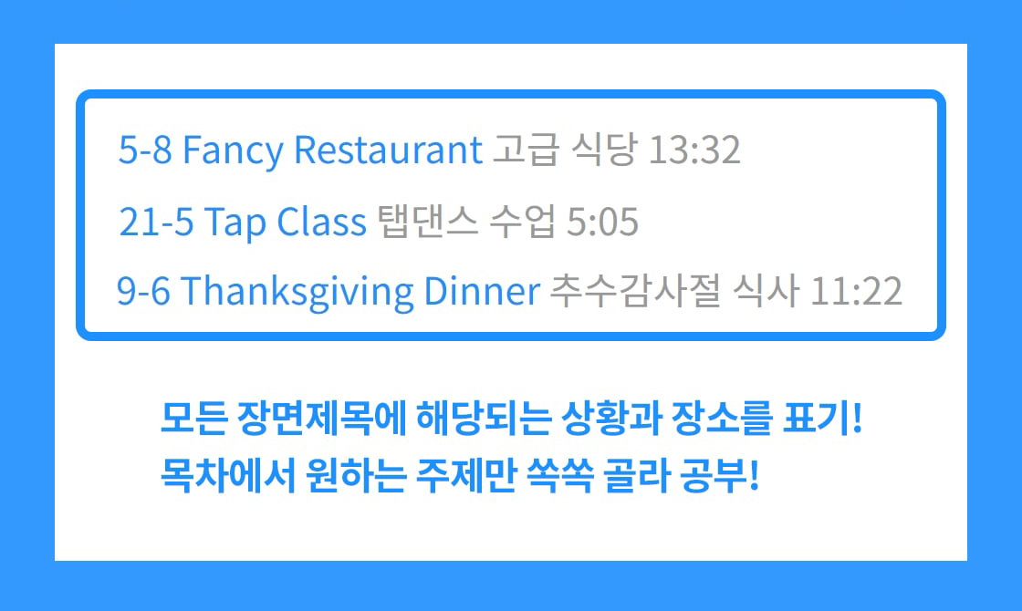 ‘식당, 탭댄스, 추수감사절’ 등 관심 있는 주제만 집중 공부!