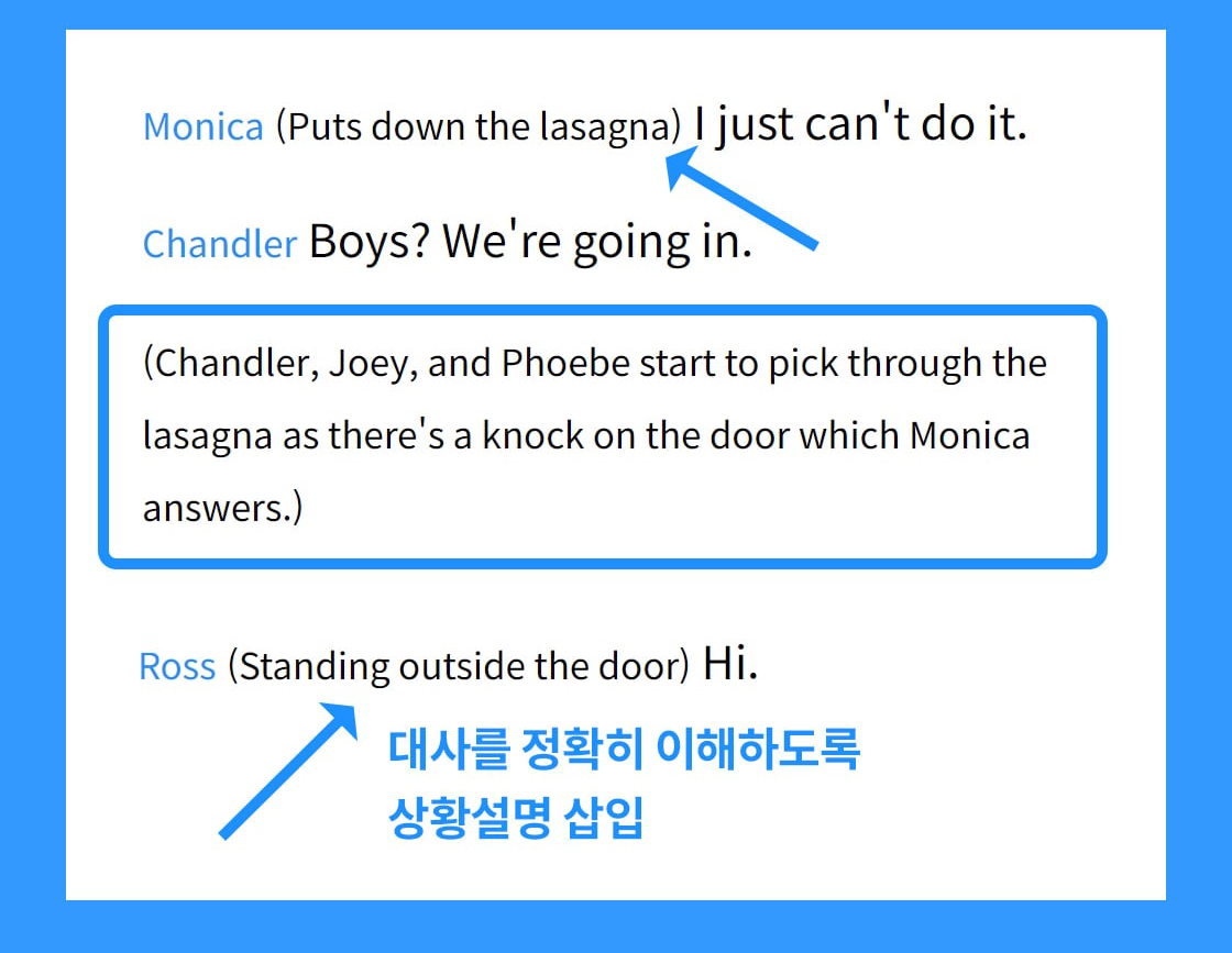 앞뒤 문맥과 상황에 따른 대사를 정확히 이해 가능