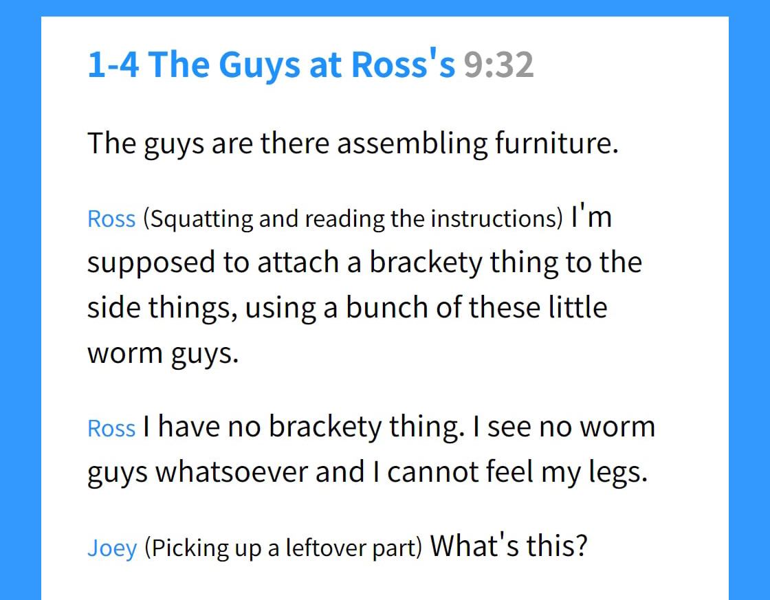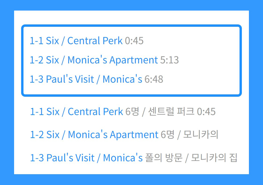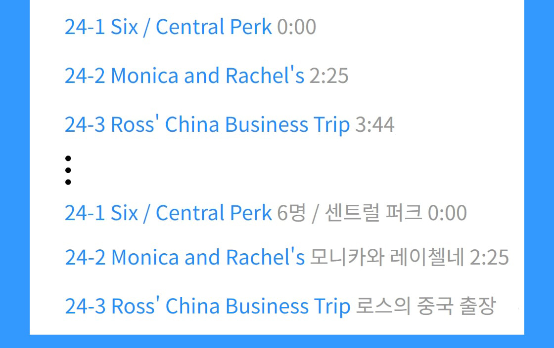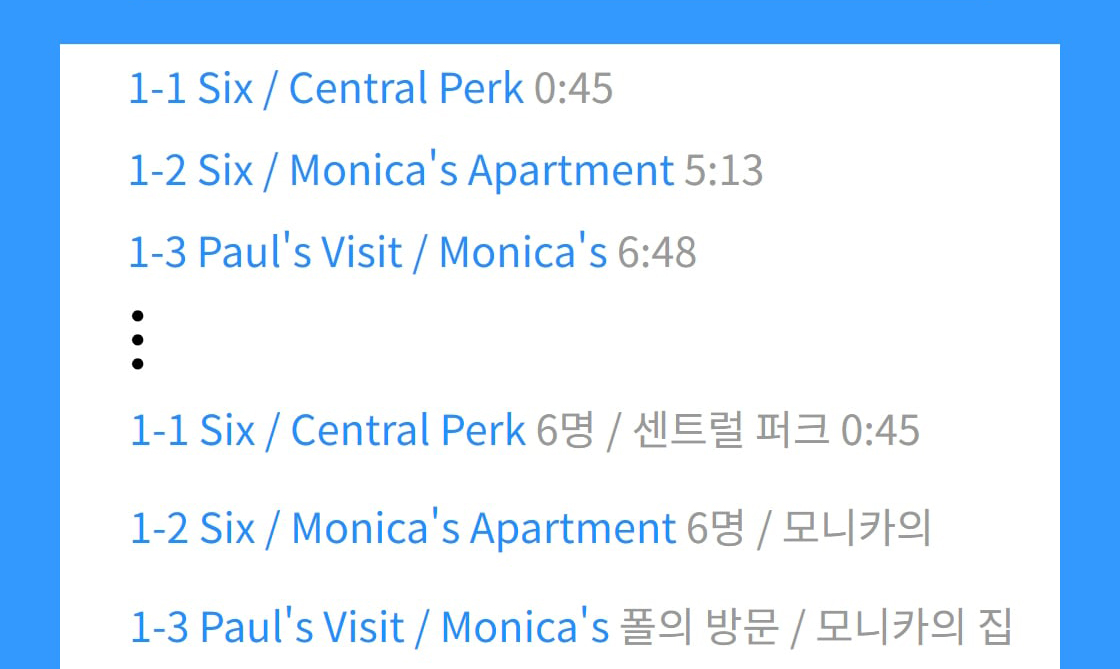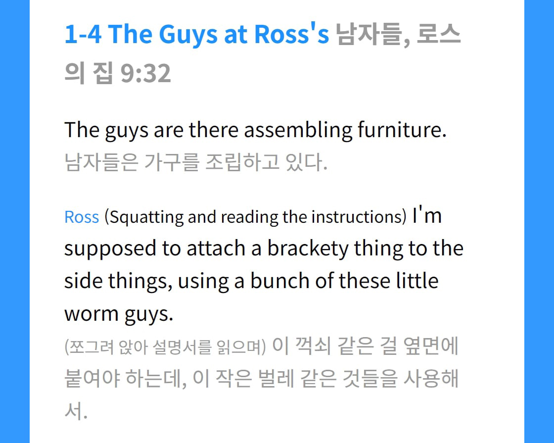 미드 프렌즈 대본 대사 스크립트 시즌1의 영어 전체 통대본, 대사집