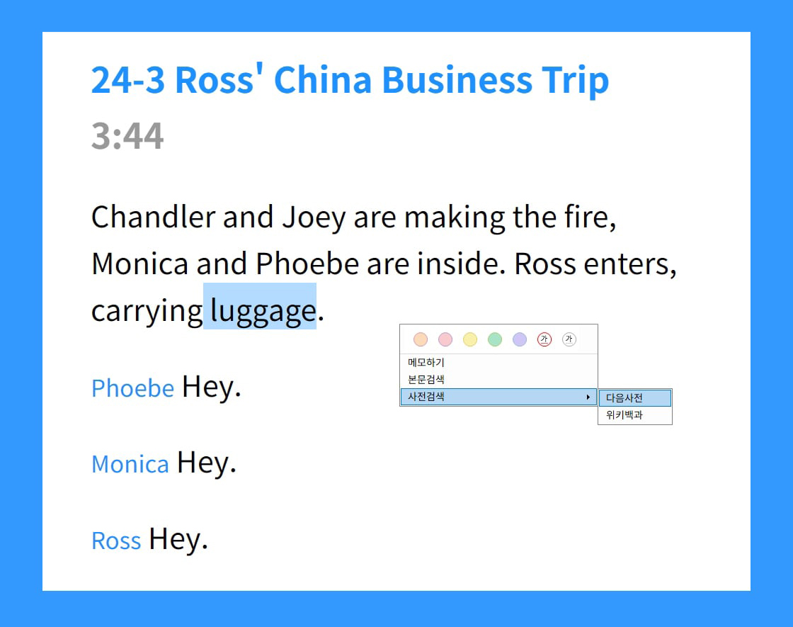 고품질 미드 프렌즈 대본 대사 스크립트 시즌1