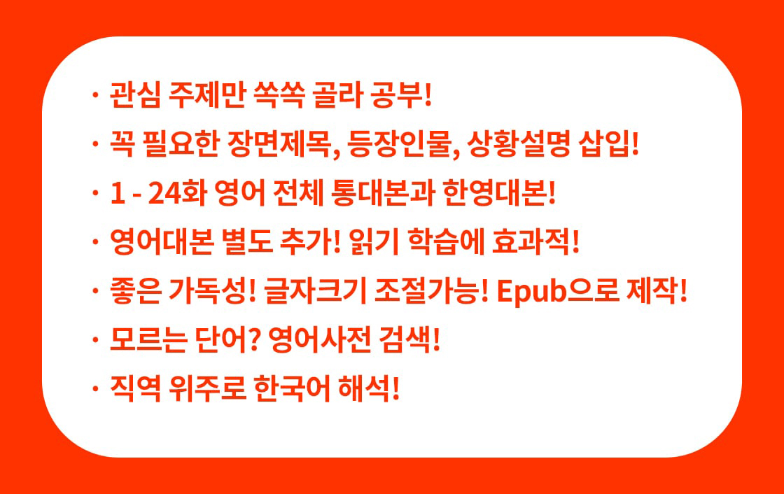 • 영어대본 별도 추가! 읽기 학습에 효과적!