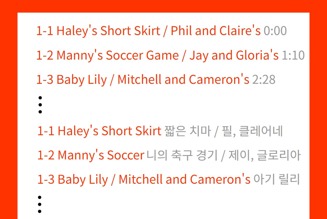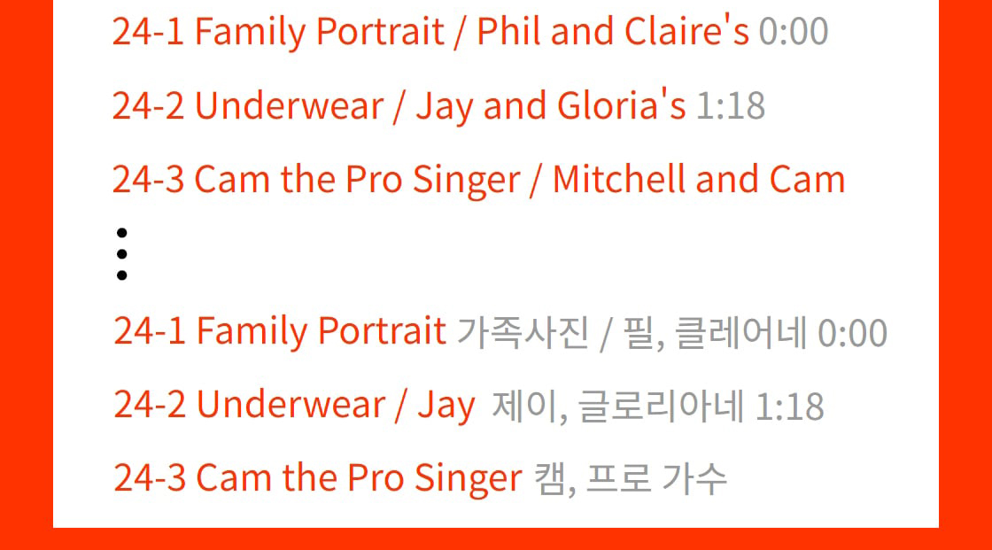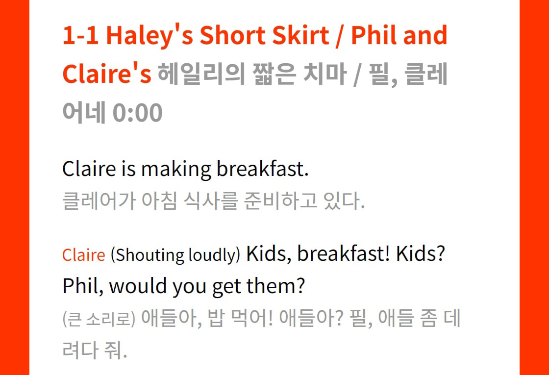 • 한국어 책 제목 : 고품질 미드 모던 패밀리 대본 대사 스크립트 시즌1