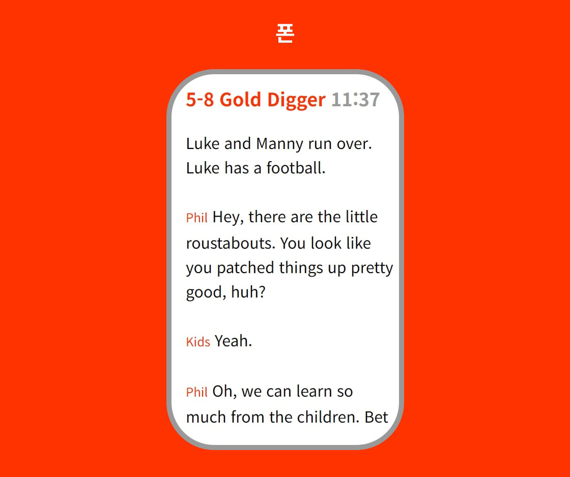 폰, 태블릿, PC, 리더기에서 대사가 모두 다 잘 보임