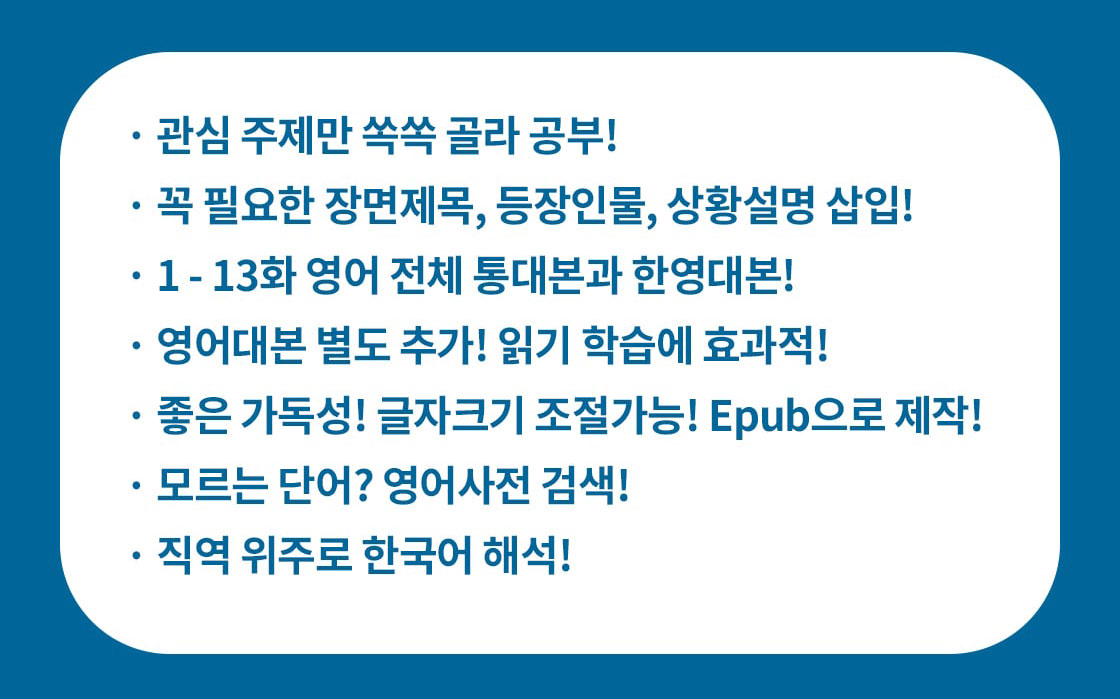 • 영어대본 별도 추가! 읽기 학습에 효과적!