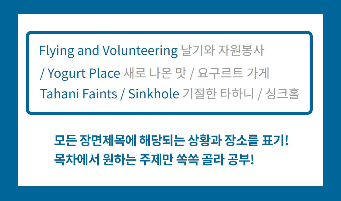 ‘자원봉사, 요구르트 가게, 싱크홀’ 등 관심 있는 주제만 집중 공부!