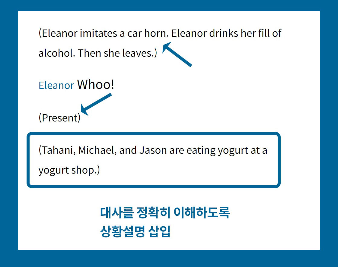 앞뒤 문맥과 상황에 따른 대사를 정확히 이해 가능