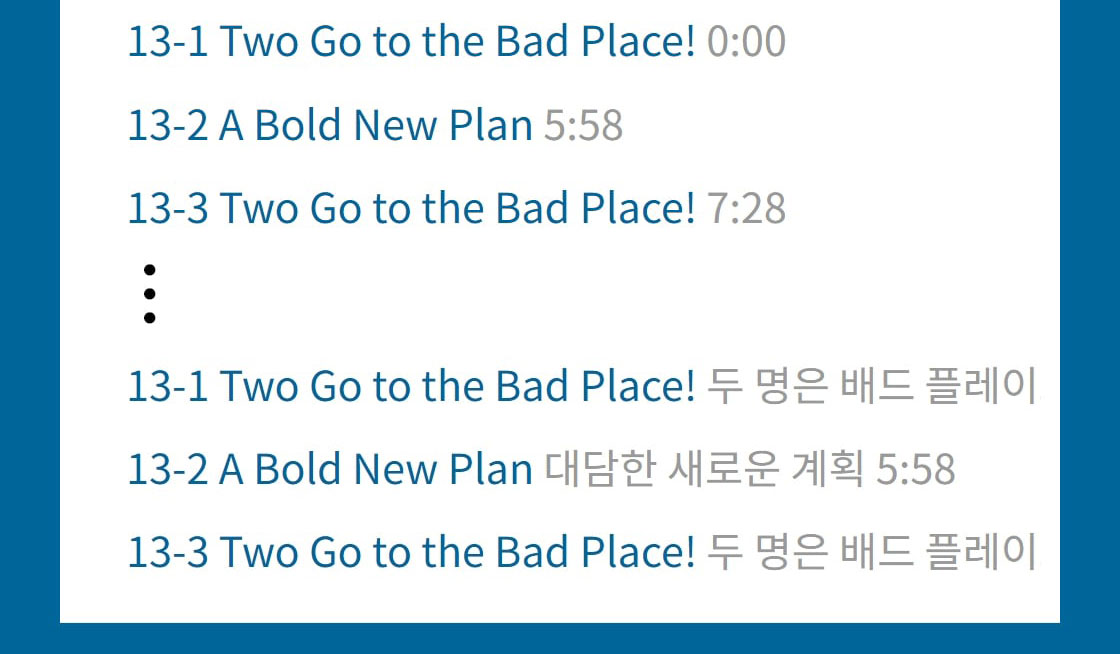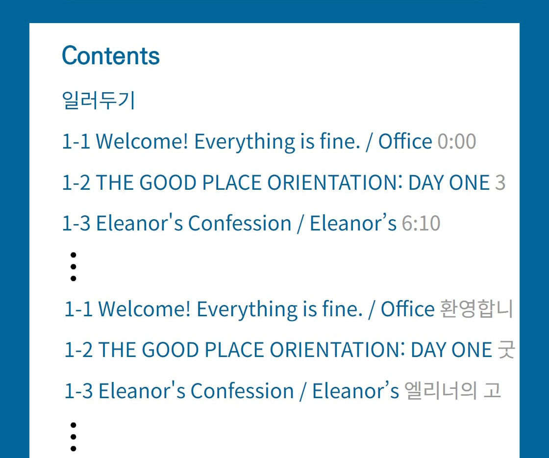 3-1 Tahani’s Gift / Eleanor’s 타하니의 선물 / 엘리너네 0:00