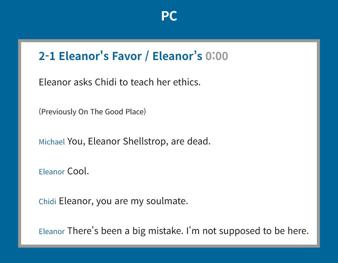 1-9 Eleanor and Chidi’s Conflict / Eleanor’s 20:40