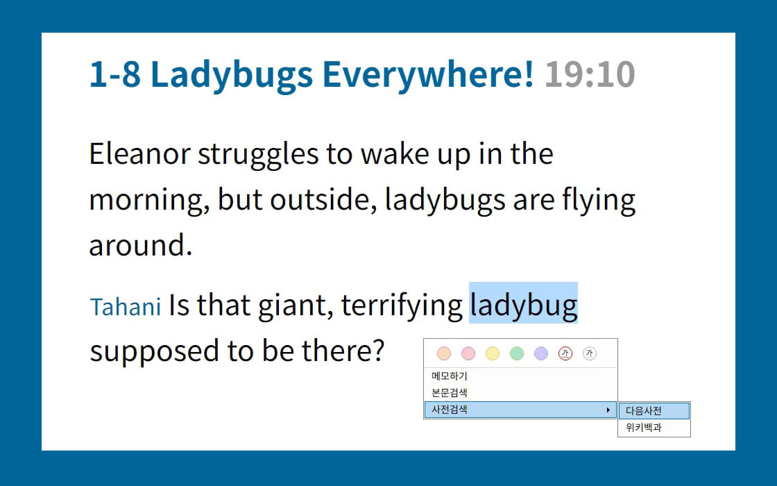 영어 대본 별도 추가! 읽기 학습에 효과적!